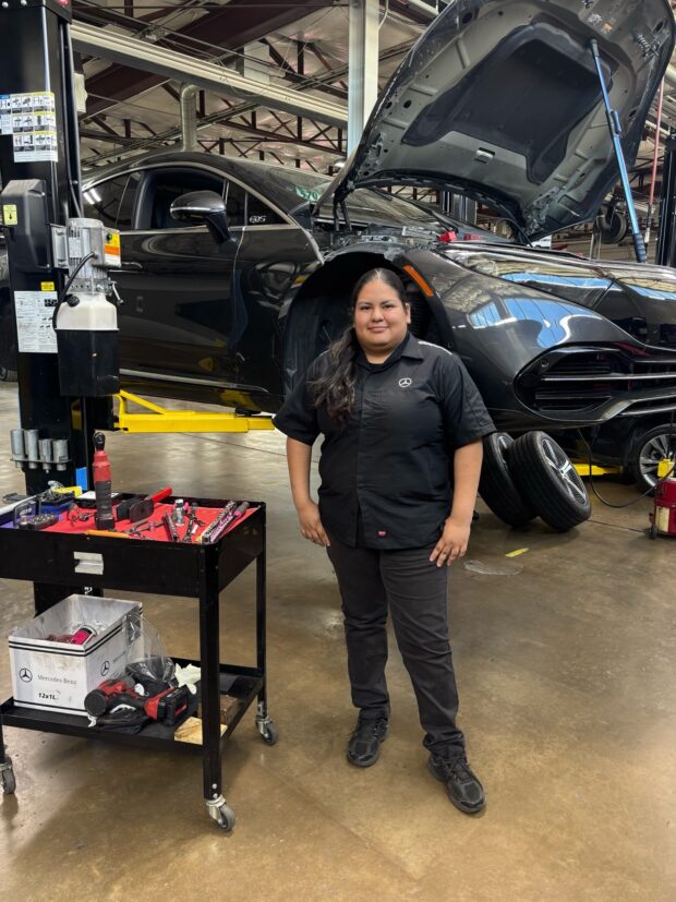 Park Place technician Crystal Aranda has been with Mercedez-Benz Dallas since May 2025. She brings talent, communication skills, and the ability to build trusting relationships with clients and her co-workers.